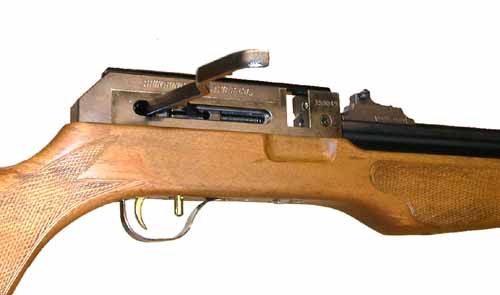- Cock the rifle . DO NOT RETURN THE LEVER TO THE CLOSED POSMON. Leave it in open (half-cocked) position.